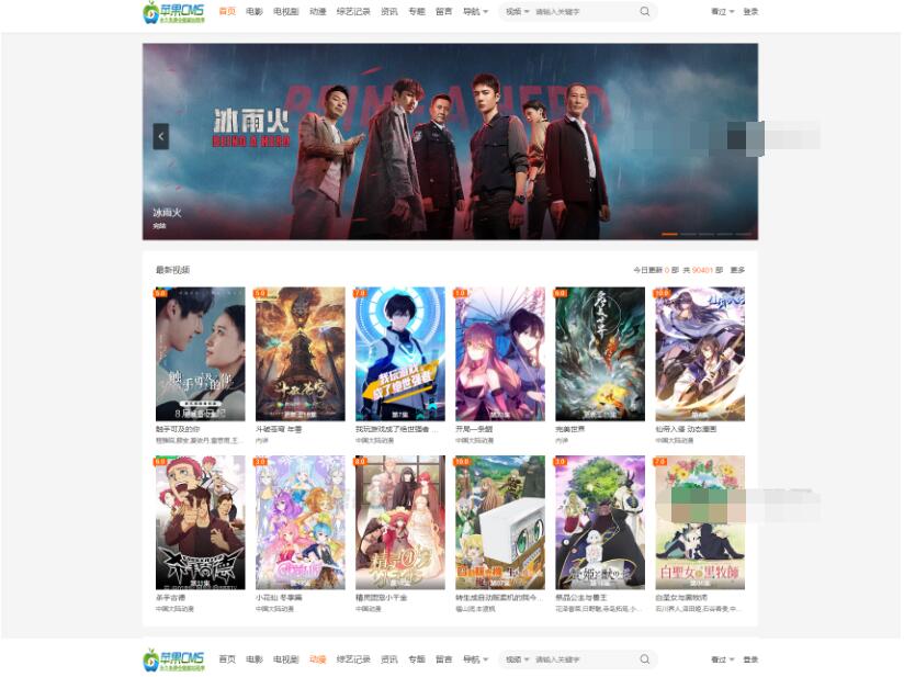 - 主题模块:视频 文章 专题 明星 用户中心 站内公告 影院热映